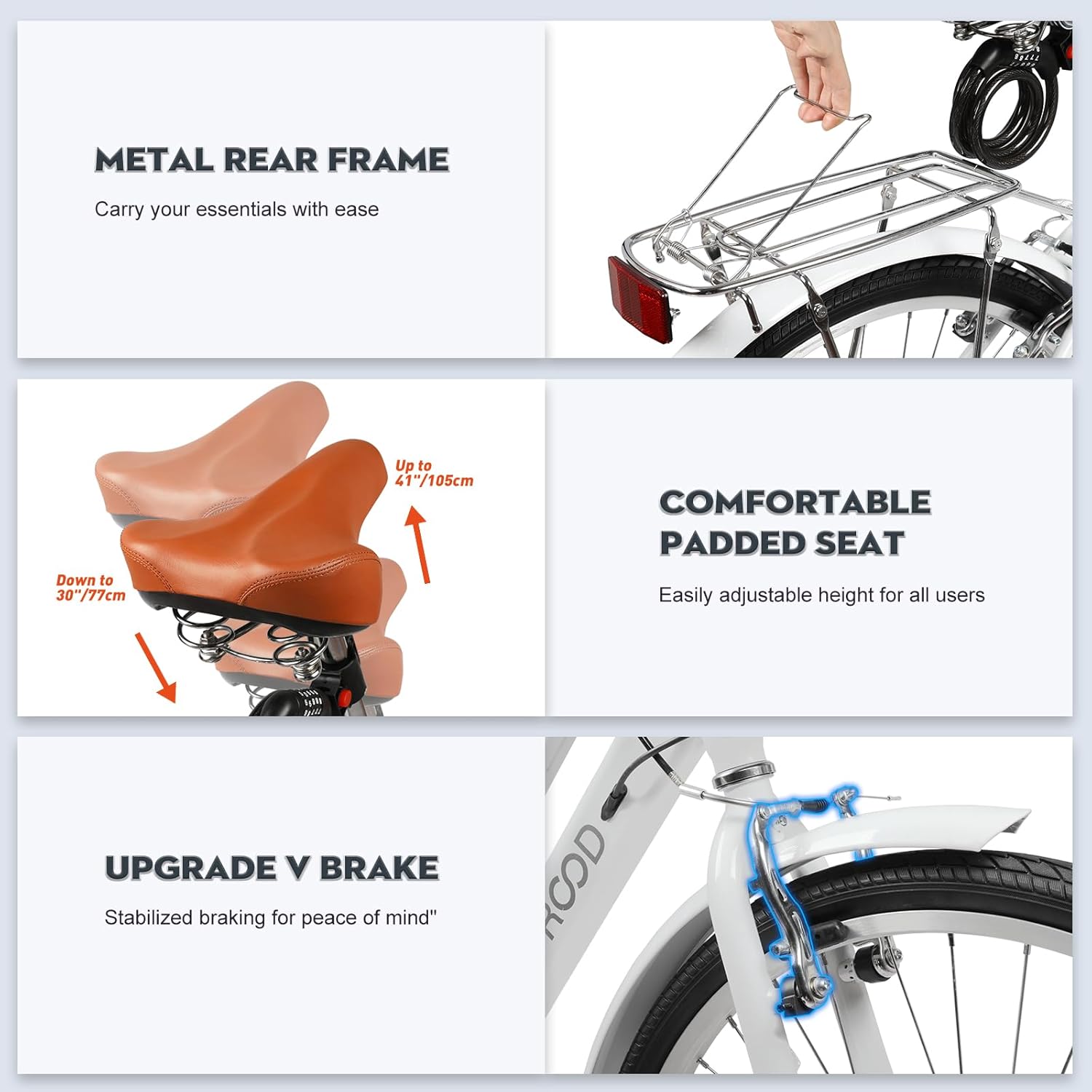 26 Inch Women Beach Cruiser Bike, 7 Speed Hybrid Cruiser Bike with Adjustable Seat, Beach Cruiser Commute Bike with Lightweight, Anti-Skid Tires & V-Brakes for Women