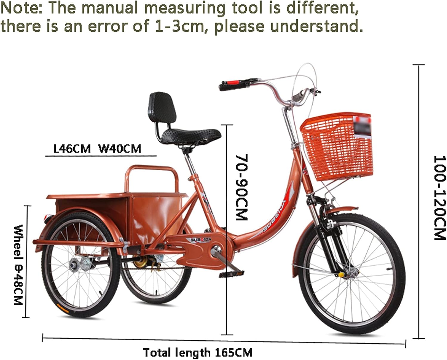 This tricycle will be a practical tool in your daily life. It can be used for entertainment, shopping or exercise. You no longer need to worry about riding while you have nowhere to carry your belongings. You can ride safely and comfortably on town streets, beaches or bike lanes; PRODUCT FEATURESHigh carbon steel thickened, low span frame: thickened frame tube wall, high carbon steel material, stable and firm, high load bearing capacityLarge particle shock absorbing tires: aluminum alloy double layer rims, thickened explosion proof tiresComfortable cushion with thickened shock absorption: soft and comfortable, with shock absorbing springs at the bottom for more comfortable ridingHydraulic shock absorber design, the effect is remarkable, suitable for all kinds of roadsEnlarge the body and open the body: the body can be opened, it is convenient to get on and off the truck and easy to load and unload the truckFront and rear dual brakes, sensitive braking: safe escort, the front and rear dual brakes can be braked steadily when emergency braking is appliedIncreased reinforcement: safe chassis load, increased stable chassis design, safe loadPRODUCT SPECIFICATIONSProduct name: tricycle for the elderlyFrame: High carbon steel frameHandlebar: aluminum handlebar stainless steel handlebarSaddle: Comfortable leather saddleFront fork: hydraulic shock absorbing front forkCrankset: 32T CranksetFlywheel: 18T (teeth)Front hub: electroplated/high carbon steel hubRear hub: Electroplated high carbon steel hub with built - in bearingsChain: Steel chainRim: 20 inch aluminum allo