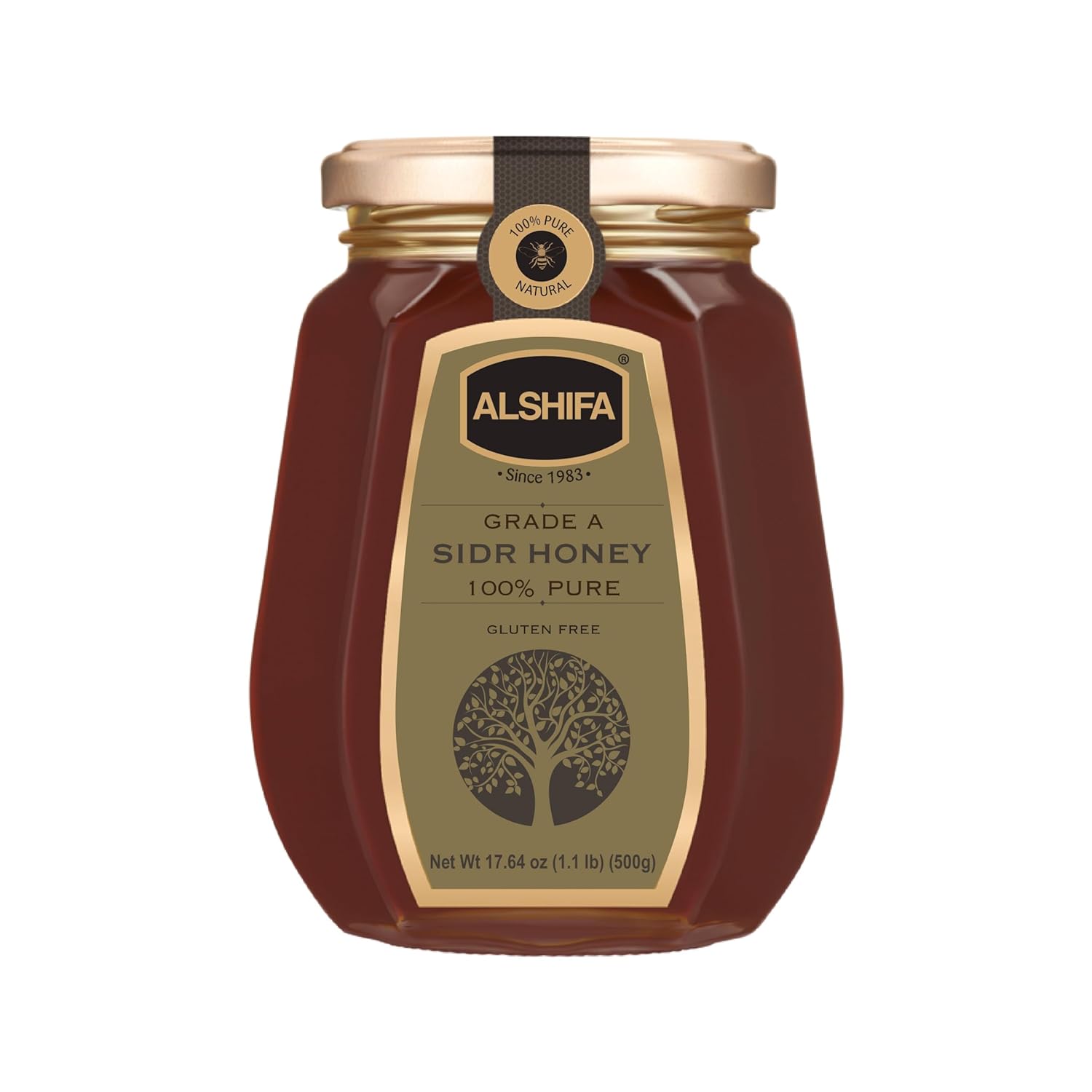 ALSHIFA Sidr Honey 250g in transparent glass bottle from Saudi Arabia and comes with quality packaging. High quality 100% pure honey. Sidr honey is produced by bees who only feed on the nectar of Sidr trees. Sidr honey is considered one of the finest honey and it's been known for healing benefits since ancient time. The Sidr tree has been used to promote health and healing. Fruits of sidr trees were found to have a very high-energy value.Sidr honey is characterized by golden light color, it darkens and tends to redness over time.