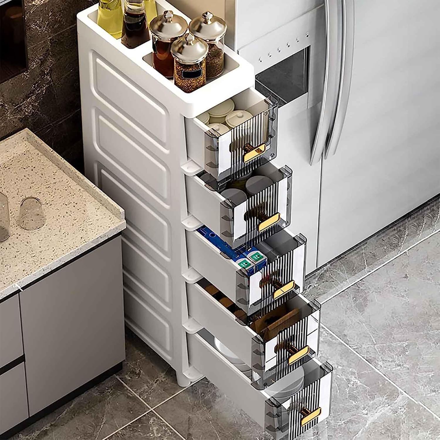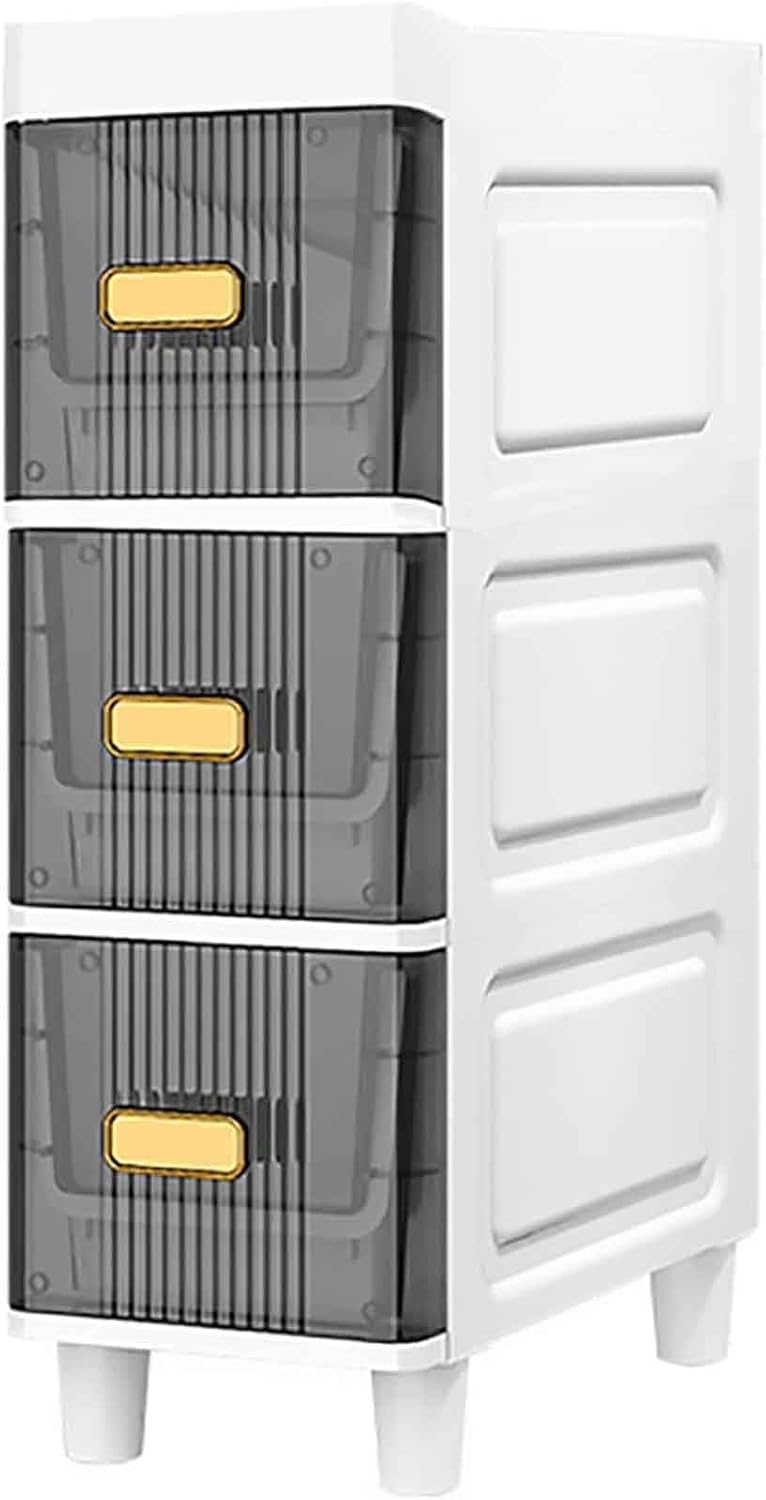 Are you looking for a bathroom storage cabinet with a small footprint and large storage capacity? This multi-functional thin storage cabinet will be the perfect choice for you 1.Regular partition of multi-layer drawers The reasonable storage layered structure of the narrow drawer storage tower is convenient for classifying and storing your items and ensuring orderly storage. 2.Easy to pull and clean The drawers of the narrow storage bathroom floor cabinet have recessed armrests on the outside of the drawers,which are labor-saving and convenient to extract.Fully closed dustproof,waterproof and splashproof,the bathroom can also be placed casually 3.Different drawer sizes Each drawer can store corresponding items,especially the large drawer with a higher capacity at the bottom,which can hold large bottles of laundry detergent 5.The structure is stable and light Bathroom little cabinet stand is light,easy to carry and effortless,and the drawer has built-in buckles,which will not fall when turned over.The thickened material reinforcement structure can easily bear the weight of adults,and it is more secure to use Specification: Product name:Multifunctional Slim Storage Tower Product Type:2 drawers,3 drawers,4 drawers Product weight:4kg,5kg,6kg Product material: PP+ABS Package Included: 1x Bathroom Drawer Cart Storage Tower Note Before purchasing,please carefully read the product size to ensure it is suitable for your needs