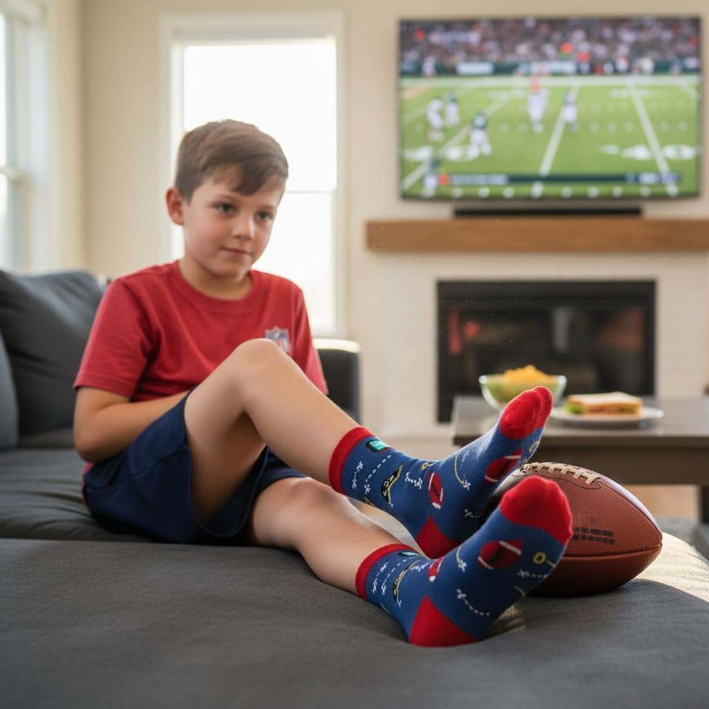 Belloxis Funny Athletic Socks 5 Pcs, Multi-Sport Design (Basketball, Baseball, Soccer, Hockey), Crew Socks for Boys Girl