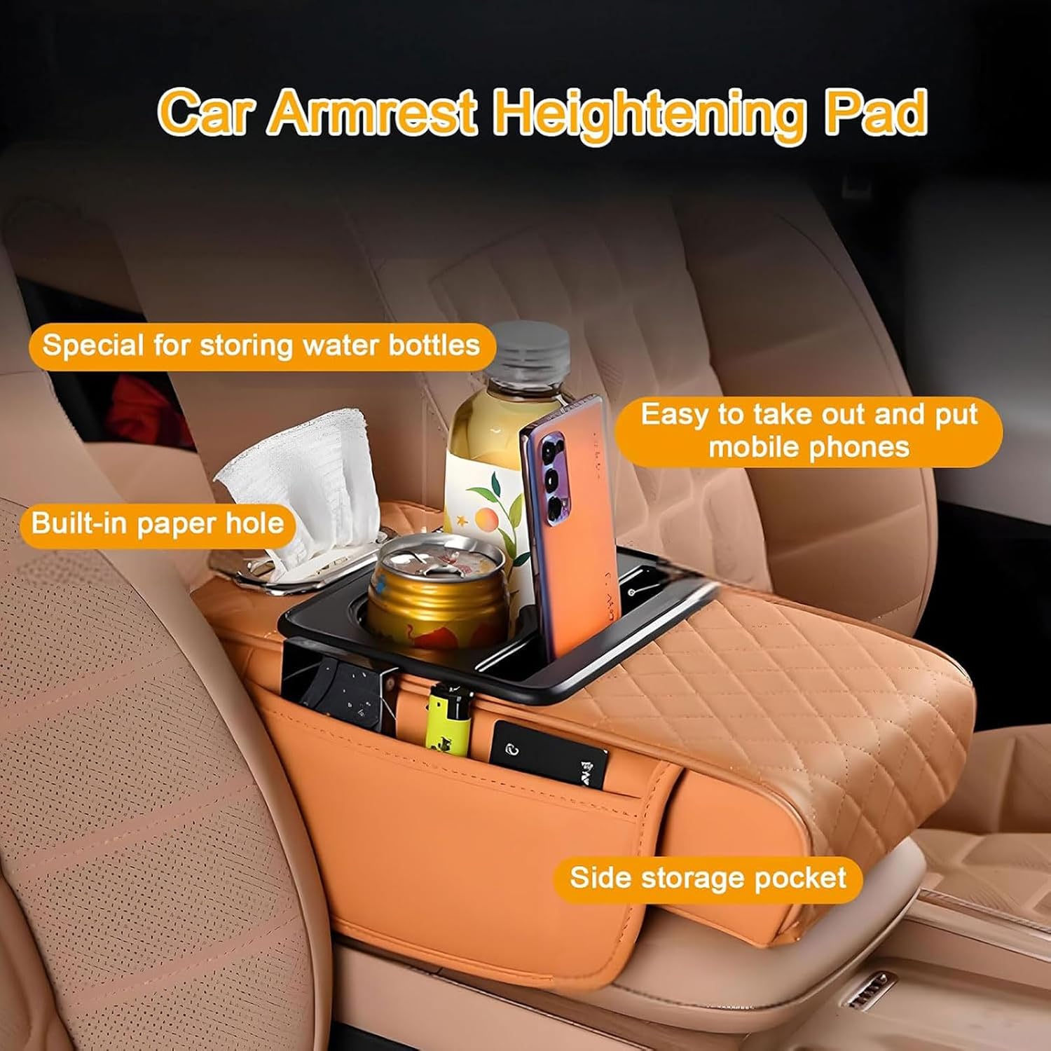 【Specification】- Product Name: Car Armrest Storage Box Mat- Product material: Pu leather + sponge- Product colour: As shown in the figure- Installation position: Armrest box【Features】- Skin-friendly touch comfortable nappa leather, memory foam liner extrusion does not deform, long time driving hands do not get sore.- Which offer long-lasting protection for the center console, effectively prevent from wearing, fading, scratching, even pet claws, dirt and sticky fingers. Keep original console looks new and clean.- Surface is very easy to clean. All dust and stains can be easily wiped off with a simple cloth. no problem when closing or opening the lid of the console.- There is also a highlight on the side of the armrest pad, with a storage bag design, convenient for storage, and put small objects at hand.- Easy to install, the bottom of the armrest box pad with elastic net, just pull the elastic net set into the armrest box, firm and safe.【Note】- About Color: Due to the difference between the screen and the light, the color of this item may be slightly different from the picture.- About the size: The size is completely handmade, please change 1-2cm according to different measurement methods.