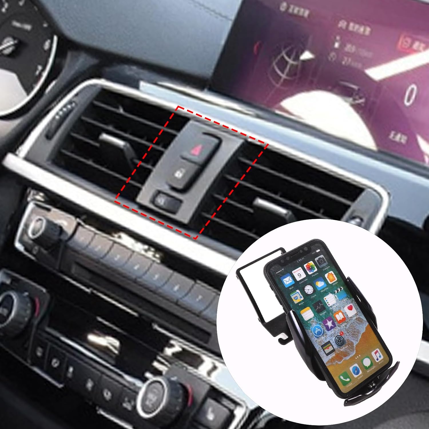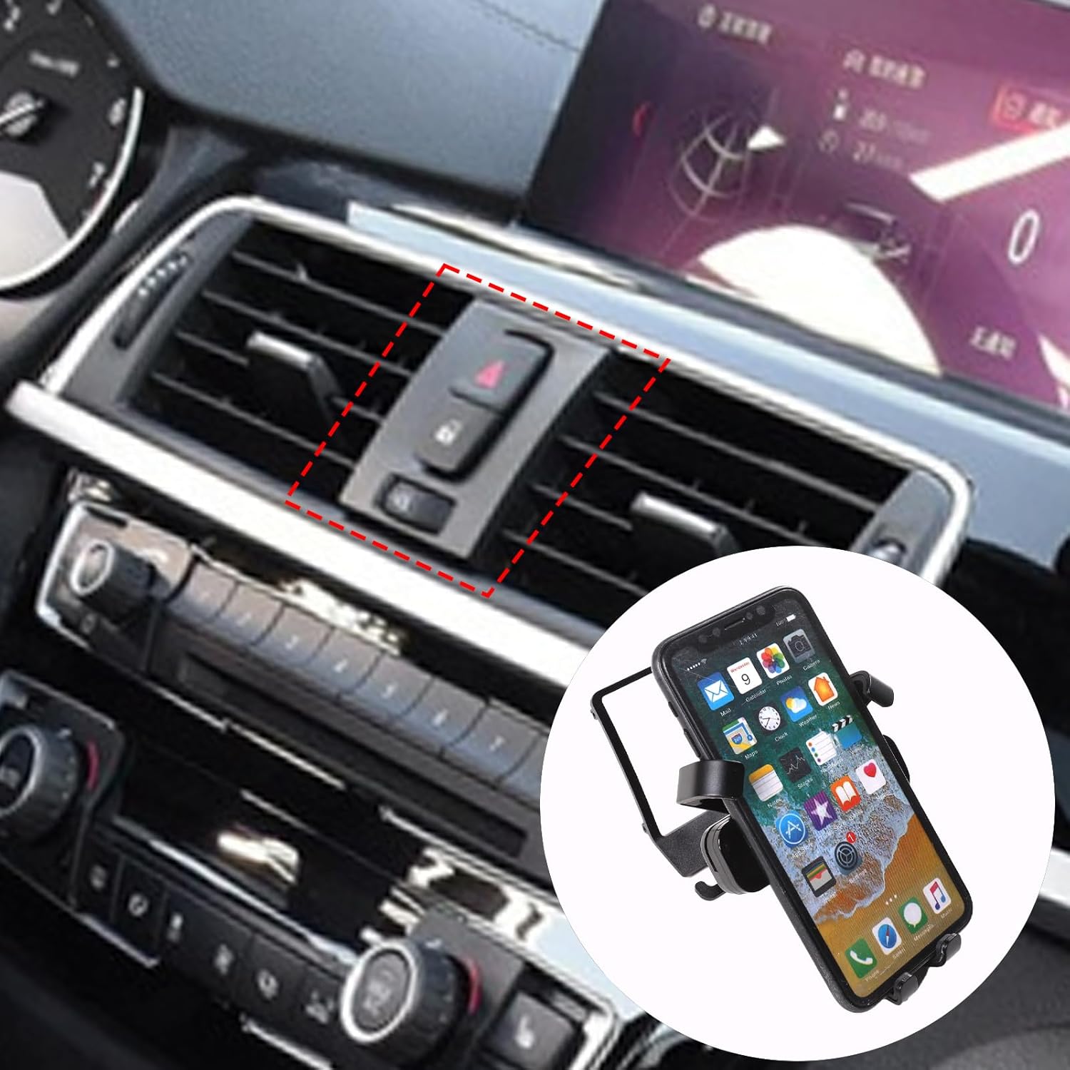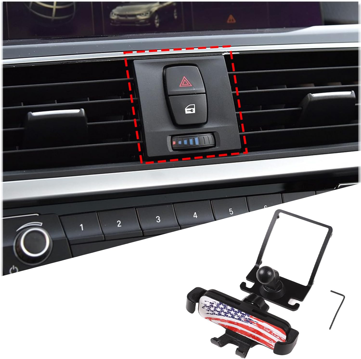 Car phone holder installation More convenient and more durable! Production name: Car center console phone holder Advantage: durable and practical, double protection to prevent your phone from falling off. Material: high quality aluminum alloy ,Color: black Package included. Car centre console hazard warning light switch frame phone holder X 1PCS