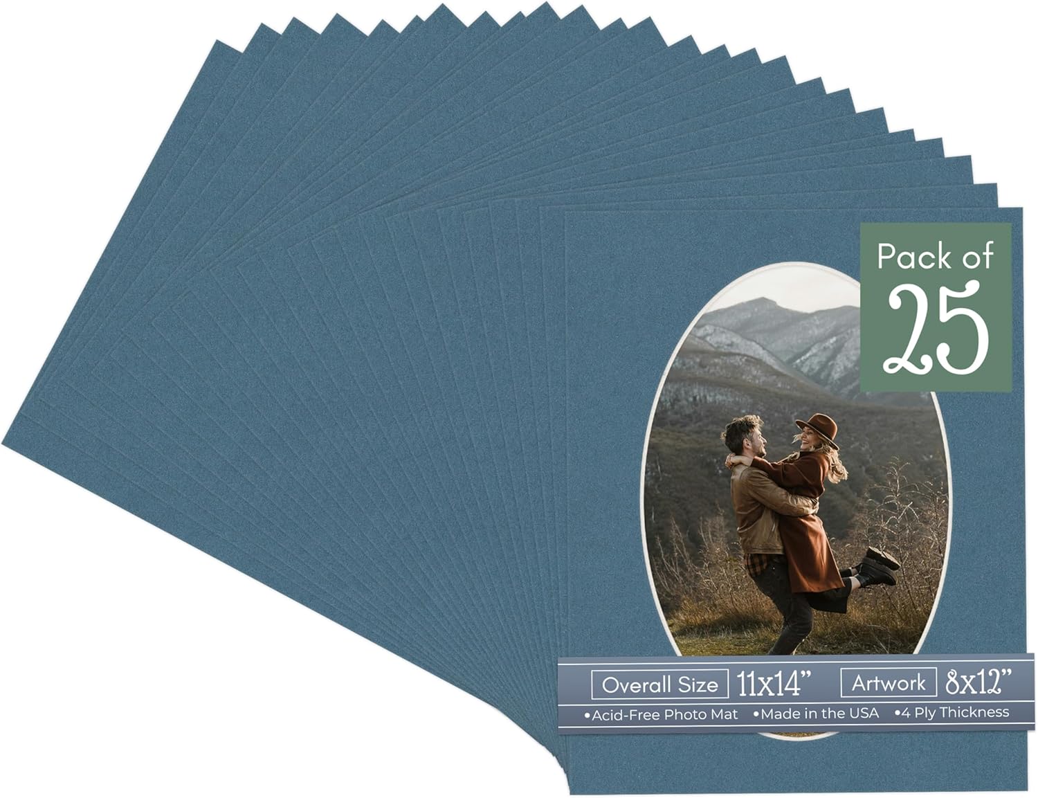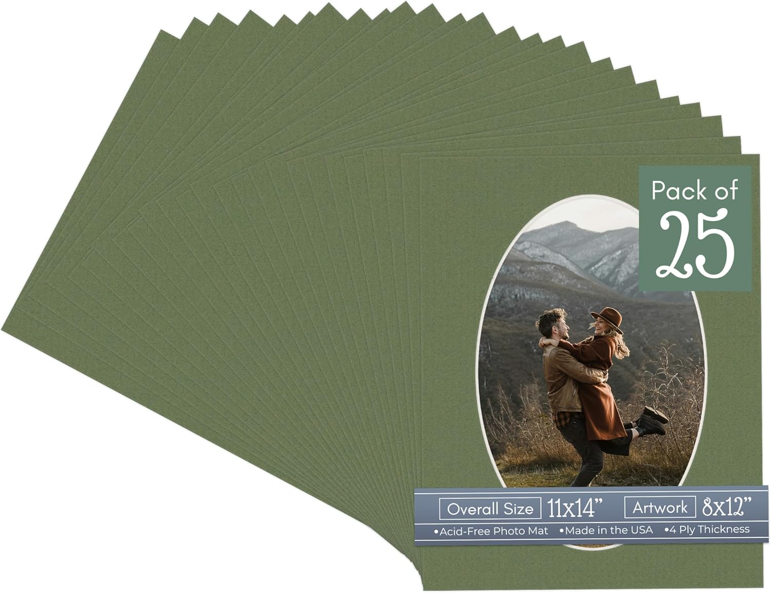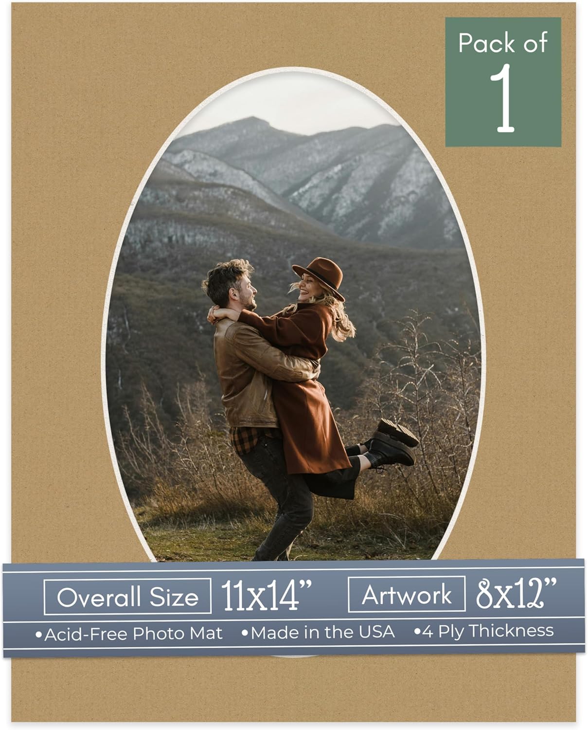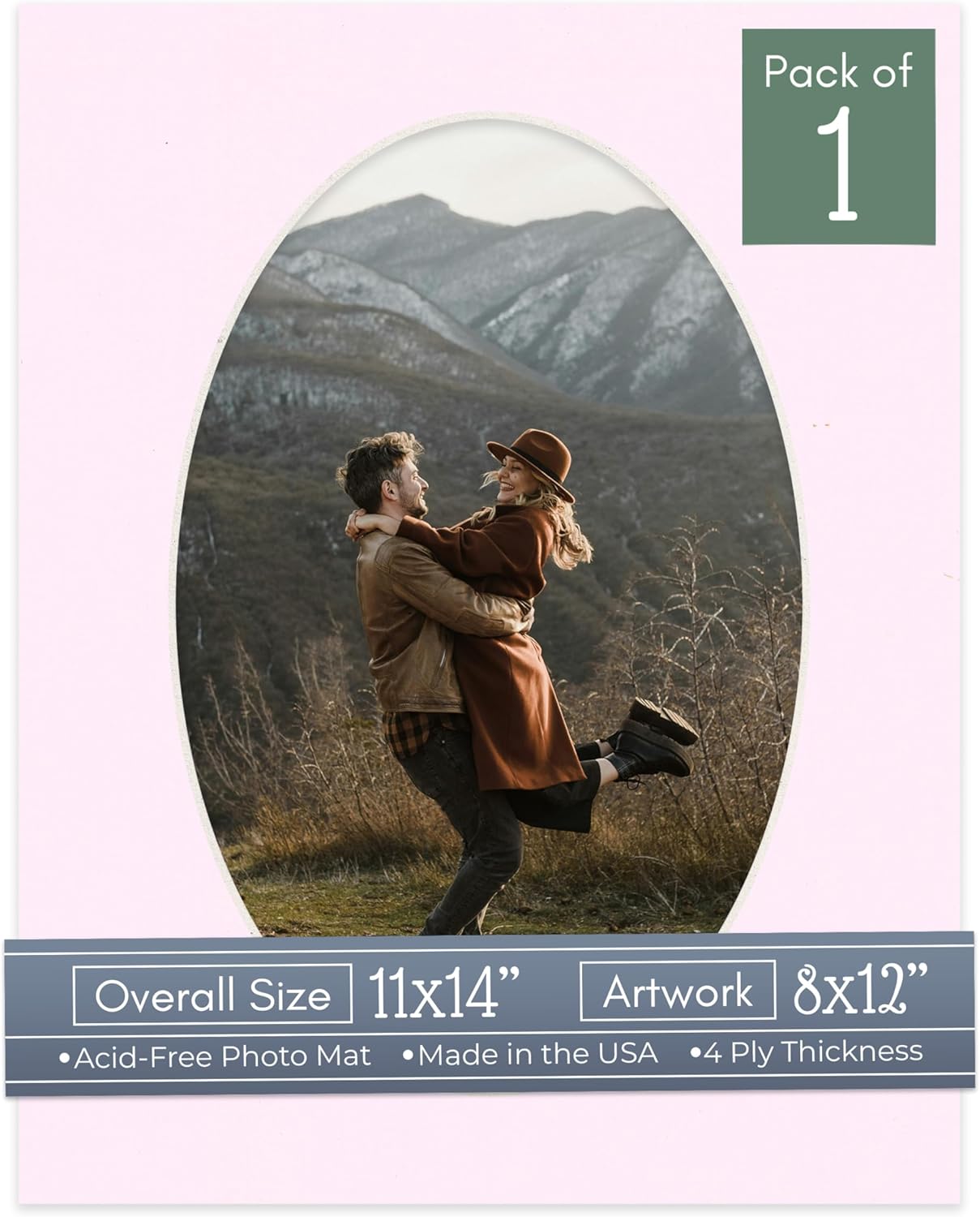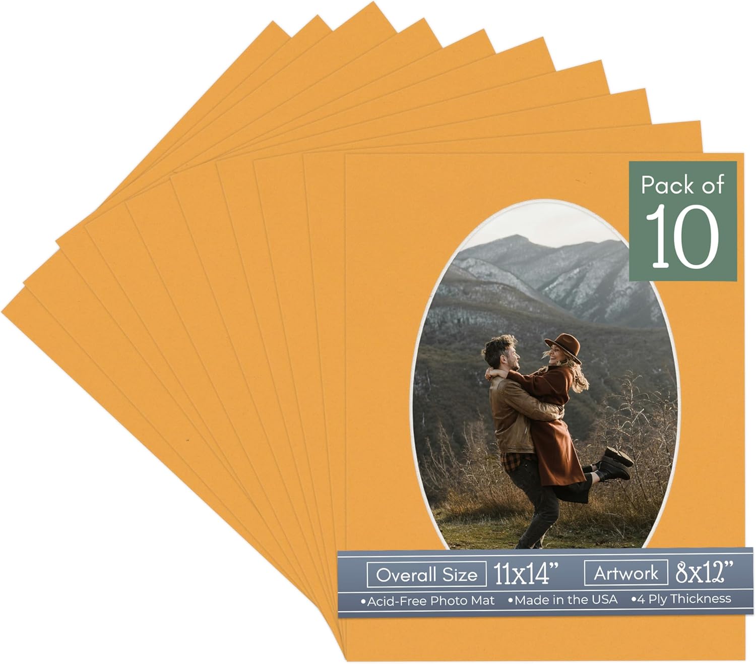 Our acid-free Fresh Linen Canvas matboards are 4-ply and feature a white core. With an overall size of 11x14, these mats with Oval openings fit perfectly into 11x14 frames and are bevel cut to showcase your 8x12 photos. Actual mat opening size is 7.5x11.5 inches so that it may safely and securely house your 8x12 photo, artwork, needlepoint, sign, etc. This pack includes 10 Matboards. Proudly made in the USA by Country Art House!