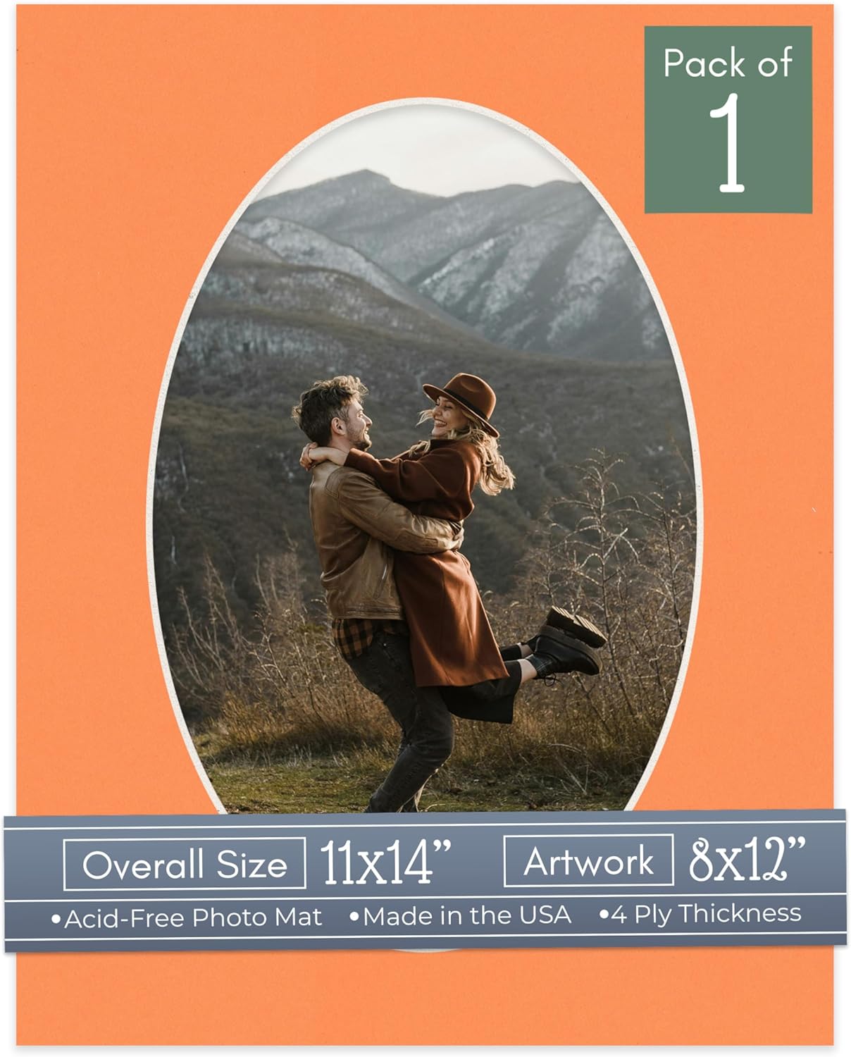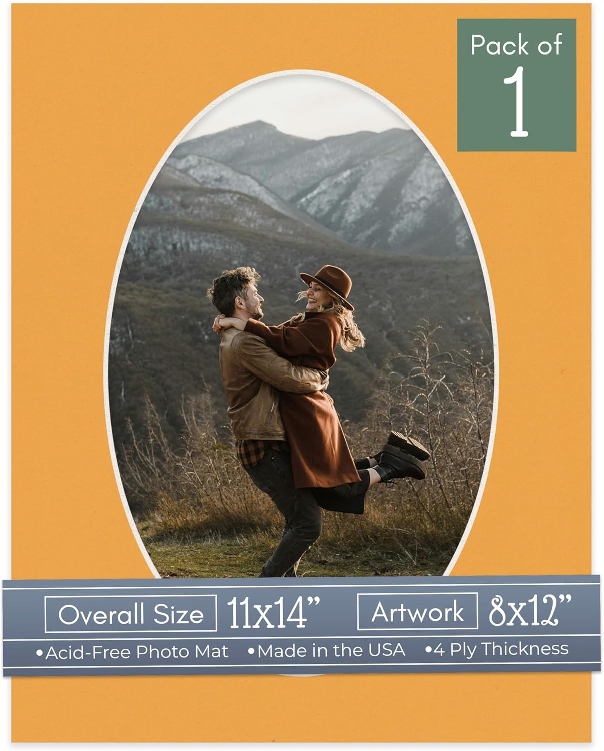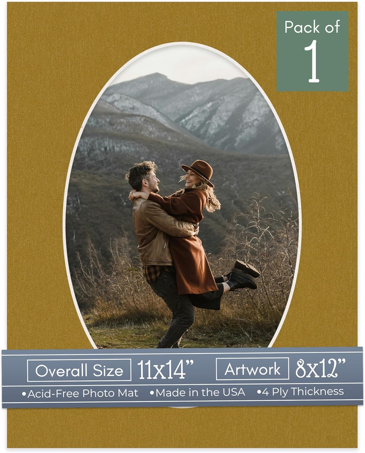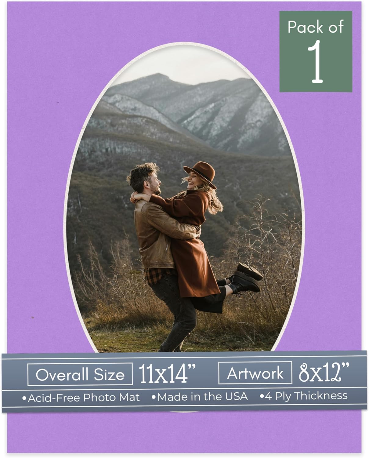 Our acid-free Fresh Linen Canvas matboards are 4-ply and feature a white core. With an overall size of 11x14, these mats with Oval openings fit perfectly into 11x14 frames and are bevel cut to showcase your 8x12 photos. Actual mat opening size is 7.5x11.5 inches so that it may safely and securely house your 8x12 photo, artwork, needlepoint, sign, etc. This pack includes 10 Matboards. Proudly made in the USA by Country Art House!