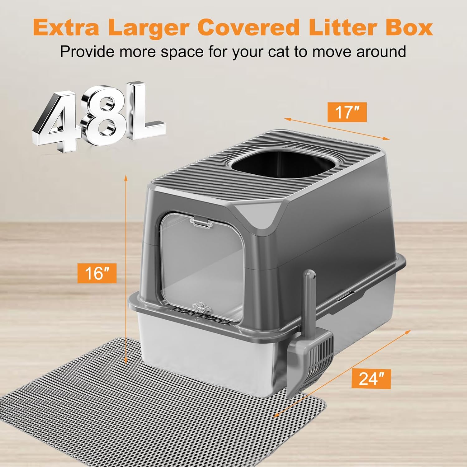 | Included Components | Brush, Cleaning Cloth, Litter Mat, Litter Scoop, Stainless Steel Cat Litter Box with Lid |