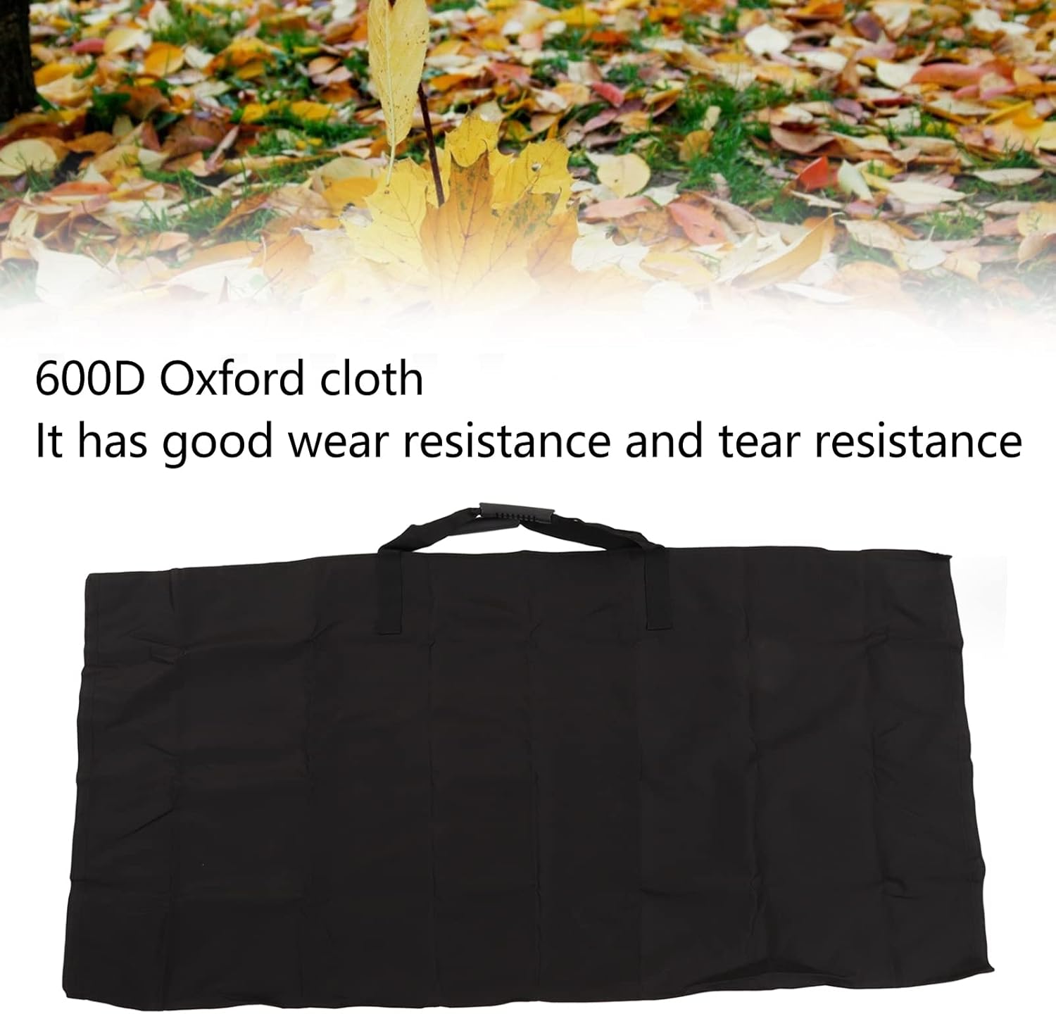 [PREMIUM OXFORD CLOTH MATERIAL] Crafted from high quality 600D oxford cloth this gardening leaf bag offers superior durability and tear resistance ensuring long lasting performance even under heavy use The sturdy fabric withstands abrasion making it ideal for tough outdoor tasks like raking and transporting garden waste without wear and tear.[STRONG LOAD BEARING CAPACITY] Designed to handle heavy loads this garden garbage bag boasts a large volume and robust construction capable of holding fallen leaves branches and other yard debris without ripping Its reinforced stitching and durable material provide exceptional strength for demanding outdoor cleanup tasks.[COMFORTABLE HANDLE DESIGN] Featuring ergonomic handles this leaf storage bag ensures easy and comfortable carrying even when fully loaded The reinforced handles prevent discomfort or strain while transporting garden waste and keep your hands clean during use making yard work more efficient and hassle free.[ENVIRONMENTALLY FRIENDLY & REUSABLE] Unlike disposable bags this gardening leaf mat is built for repeated use reducing waste and saving money over time Its durable construction withstands multiple seasons of raking and cleanup making it an choice for environmentally conscious gardeners who value sustainability.[VERSATILE OUTDOOR APPLICATION] Perfect for storing fallen leaves garden waste and outdoor debris this multipurpose bag is a must have for yard maintenance Its spacious design accommodates various tasks from leaf collection to transporting branches while the sturdy material ensures reliable performance in all weather conditions.Spec:Item Type: Gardening Leaf BagMaterial: 600D Oxford ClothGross Weight: 767g / 27.1ozProduct Size: Approx.144 x 144cm / 56.7 x 56.7inFunction: VersatileApplicable Scenario: OutdoorApplication: sundries, fallen leaves, garden wastePackage List:1
