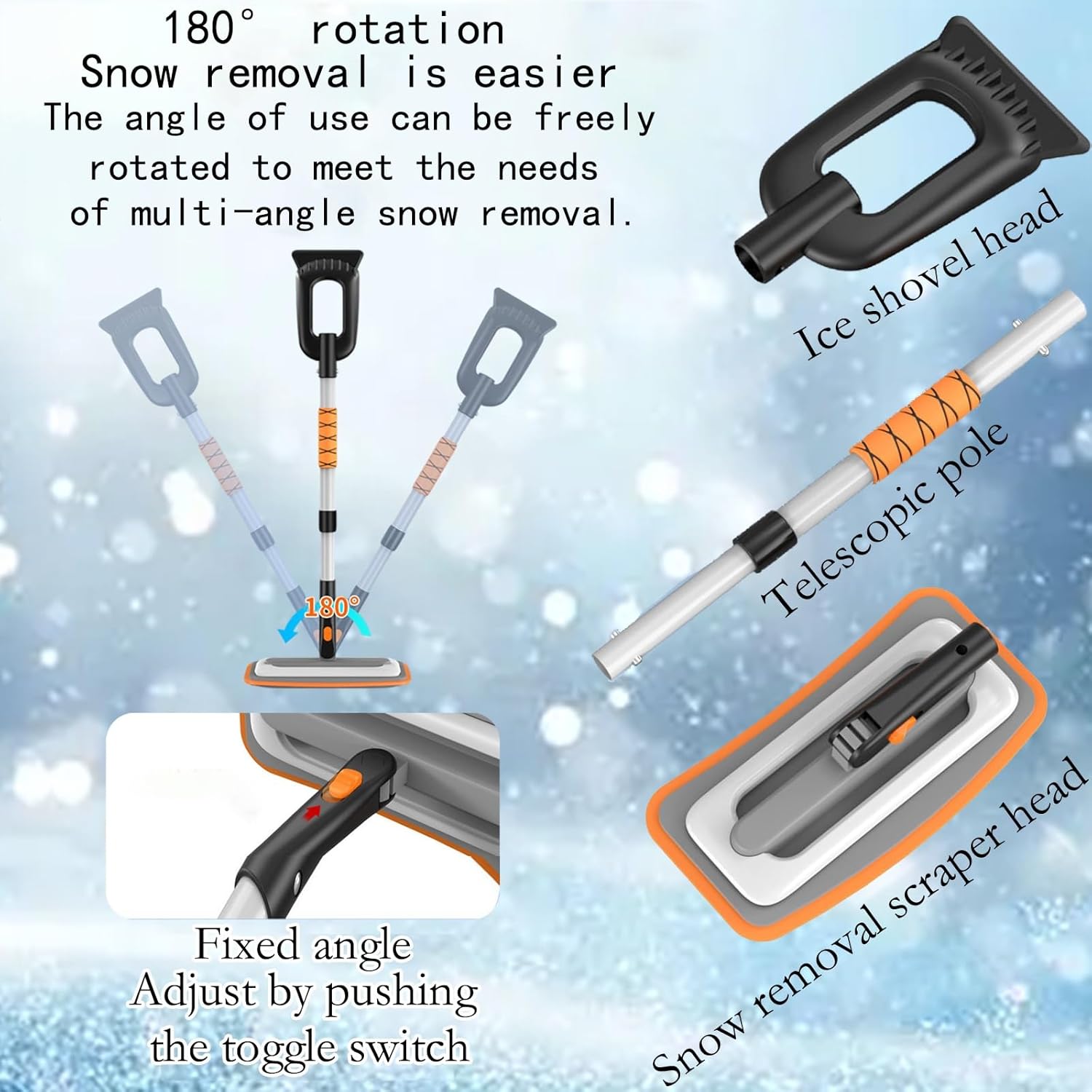 The windshield ice scraper is crafted from durable aluminum alloy, ensuring reliable performance during winter months. This extendable tool is designed to meet various cleaning needs, making it a versatile addition to your auto supplies and accessories collection. Its multifunctional design allows for efficient removal of frost, ice, and snow from vehicle glass panels, roofs, and truck surfaces. Apart from automotive use, this scraper proves useful at home, in the garden, or on the lawn for outdoor cleaning tasks. Whether addressing urgent winter conditions or routine maintenance, its adaptability ensures year-round utility. Specification Name: snow scraper Material: aluminum alloy Note: 1. Due to lighting effects and display angles, there may be color differences in the product. 2. Due to manual measurement, there may be errors in product size, please understand.