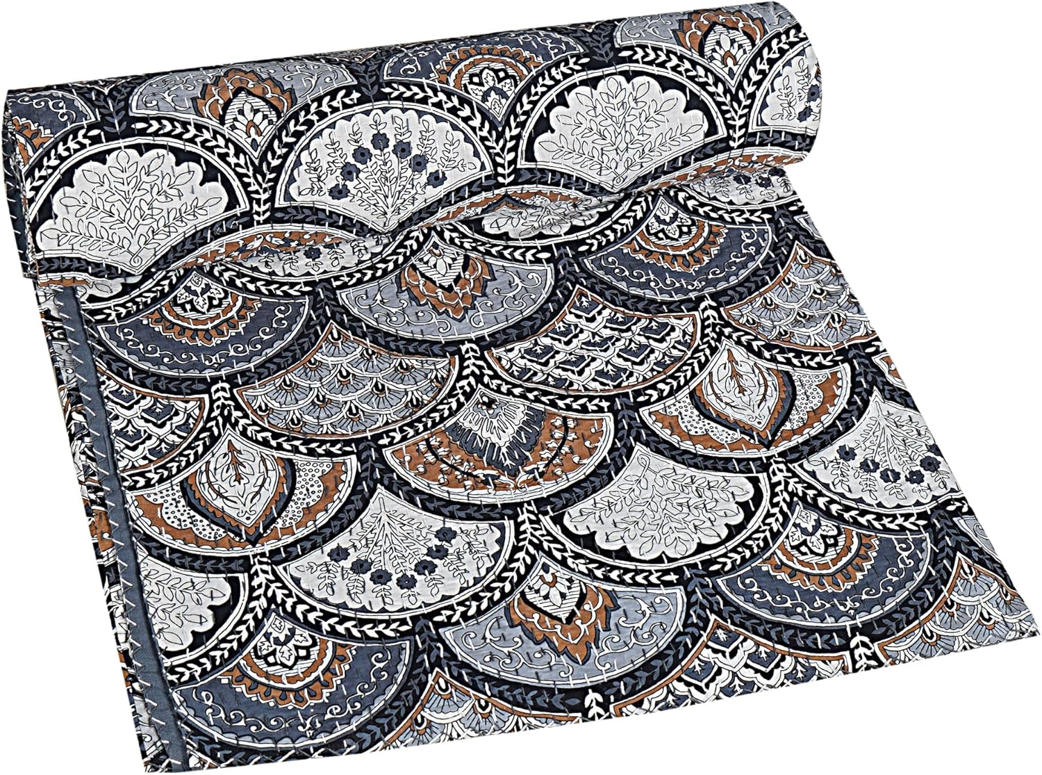 A quilt is a traditional textile, composed of three layers: a woven cloth top, a layer of filling, and a woven back, combined using the technique of quilting, the process of sewing the three layers together. Historically, quilts were often used as bed covers, and this use persists today while artistry is also getting increasingly important. Made of cotton fabric, this quilted is lightweight and comfortable. It is reversible, both sides could be used individually. Prewashed and preshrunk to be maximum durable and cozy.