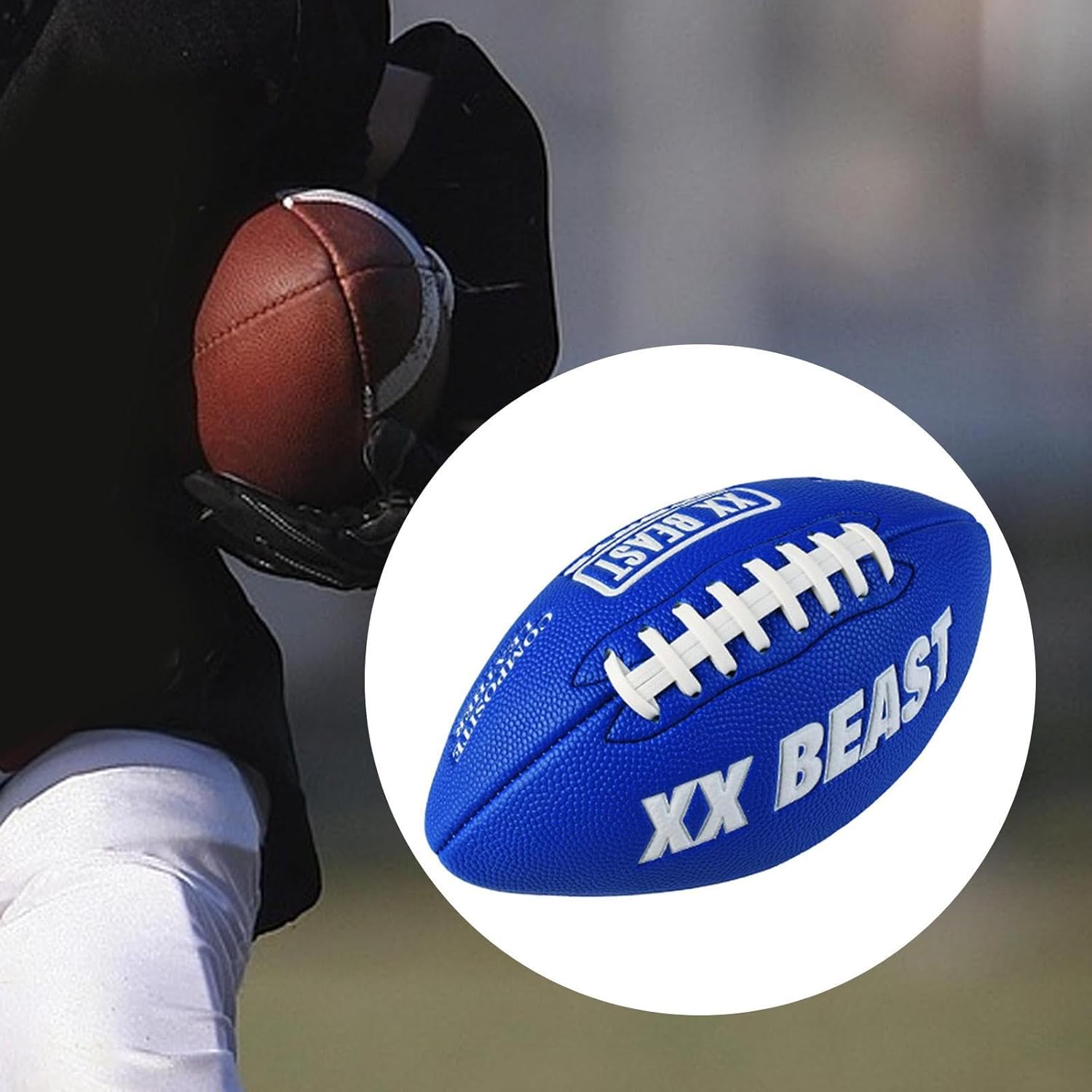 Description:- 【Premium Material】: Crafted with a nonslip PU leather exterior and a durability butyl rubber bladder, this American football offers , air retention, and long term performance- 【Enhanced Durability】: Reinforced with nylon winding and anti slip PU leather surface to ensure the ball remains soft yet resilient through training and matches- 【Comfortable Grip】: The surface design of the Rugby Ball ensures a comfortable grip, aiding in controlling their movements with the ball- 【Enhanced Performance】: Training Rugby Ball is of great construction, promotes better control and performance during play, enhancing your overall game experience- 【Versatile Use】: Designed for both training and official matches, this American football is ideal for of all skill levels looking to improve their gameSpecification:- Material: PU Leather and Butyl Liner- Color: As Picture ShownSize Chart:Size 3: Size 4 () is suitable for children aged 6-9.Size 4: Size 3 () is suitable for children aged 6-9.Size 6: Size 6 (Junior) is suitable for children aged 9-12.Size 7: Size 7 () is suitable for children aged 12-14. Officially recommend ball size for women.Size 9: Size 9 (Official) is suitable for adults aged 14 and over.Package Includes:1 American FootballNote:Please allow slightly errors 1-2cm differences due to manual measurement.