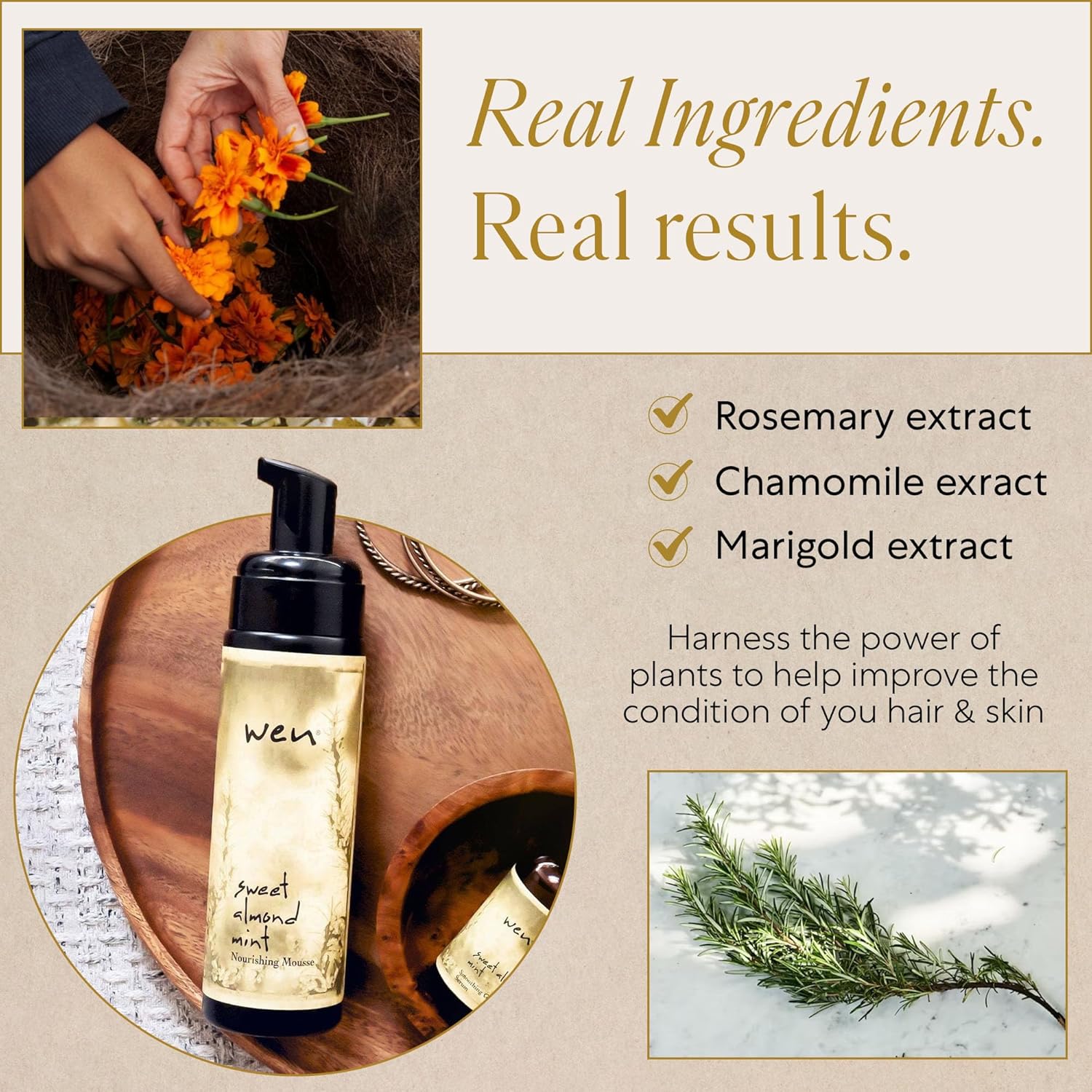 The WEN Sweet Almond Mint Nourishing Mousse adds volume and shine to all hair types. It gives lightweight hold without the stickiness of other styling products. When air drying, it provides hold, shine and helps prevent frizz. While blow-drying, it helps to create volume, body and hold. Our Nourishing Mousse is plant-based and paraben-free with no VOC's or alcohol.